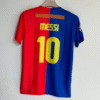 The Barcelona 2008-09 home kit, Messi edition, features the iconic blue and maroon stripes, with gold accents, Nike branding, and the UNICEF logo. It represents Messi’s prime during a historic treble-winning season.