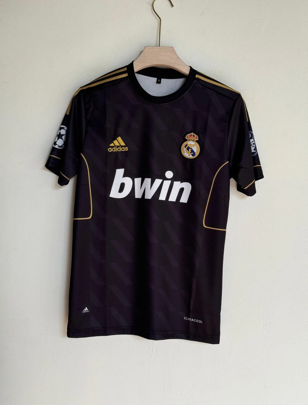 The REAL MADRID 2011-12 HOME KIT features Cristiano Ronaldo in an all-white design with a polo collar and subtle gold accents. With Ronaldo’s embroidered name and number 7, it’s a classic jersey from his record-breaking season, perfect for fans and collectors.